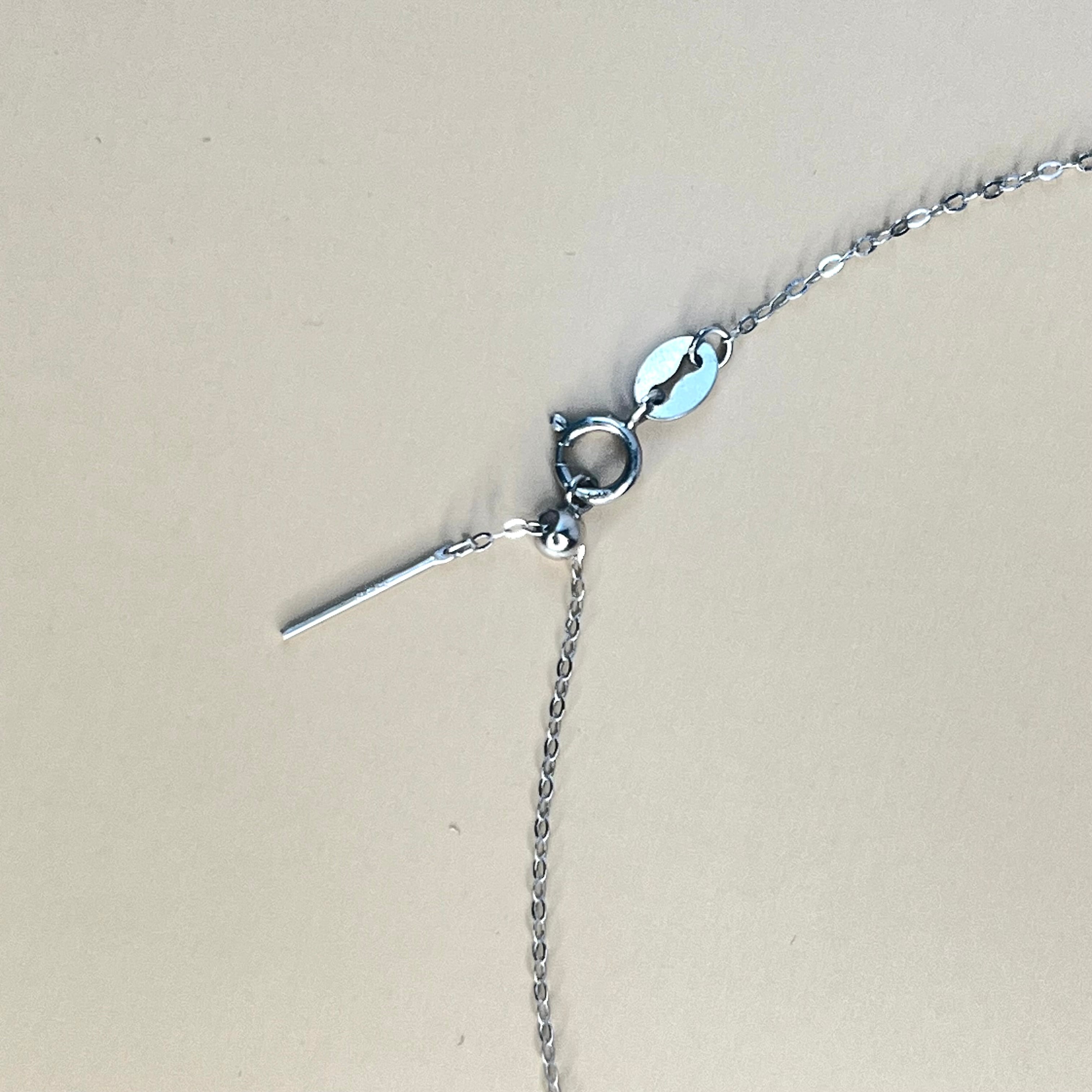 小さな粒のデザインは、光を受けて美しく反射し存在感を放ちます。最長60cmのアジャスター付きチェーンを使用しているため、長さを調節しながらカジュアルな装いからフォーマルまで幅広くお楽しみいただけるアイテムとして、日常のコーディネートに華を添えます。特別な贈り物としても喜ばれることでしょう。