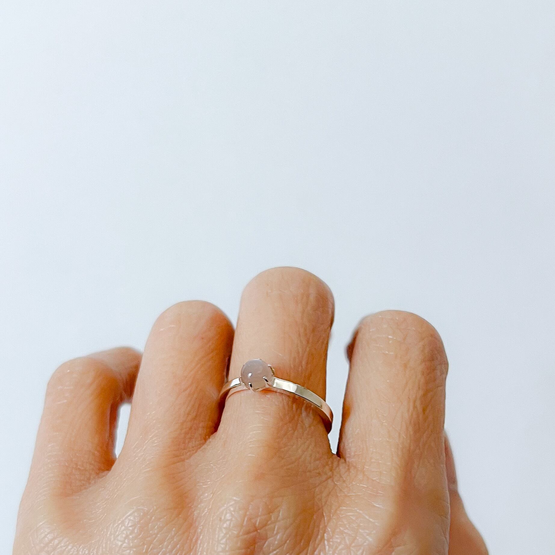 プチリングシリーズのグレームーンストーンが新しく仲間入りいたしました。グレーと言ってもグレージュカラーで明るい印象です。カラーコーディネートしやすいのでお楽しみいただけると思います。グレームーンストーンは癒し効果や能力開花、月とリンクし周期的に来る心身の不調を整えるといわれています。プレゼントにも喜ばれます。